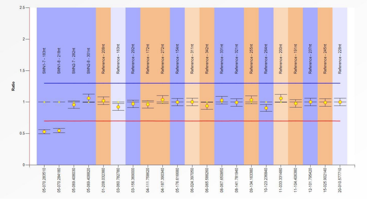 | Description | Spinal muscular atrophy (SMA) is an autosomal recessive neuromuscular disease characterized by progressive muscle weakness and atrophy caused by the degeneration of motor neurons in the anterior horn of the spinal cord. The disease is the number one fatal genetic disease in infancy, and it is estimated that there is one case in every 10,000 live births; the carrier rate of the general population is about 1/50, and the carrier rate of the domestic population is about 1/42. |