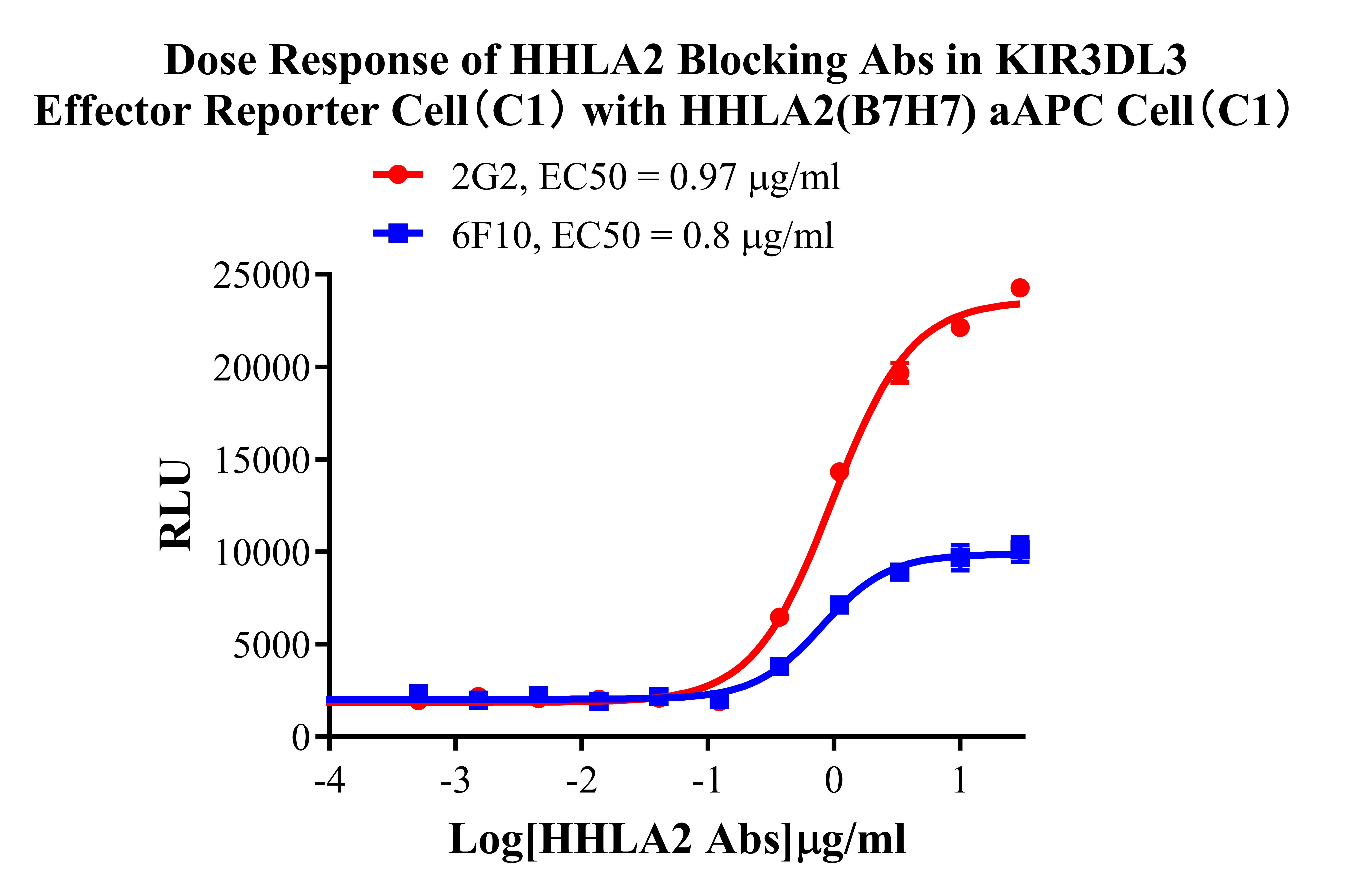 Figure 2. Dose Response of HHLA2 Blocking Abs in KIR3DL3 Effector Reporter Cells (C1)With HHLA2(B7H7) aAPC Cell(C1). |