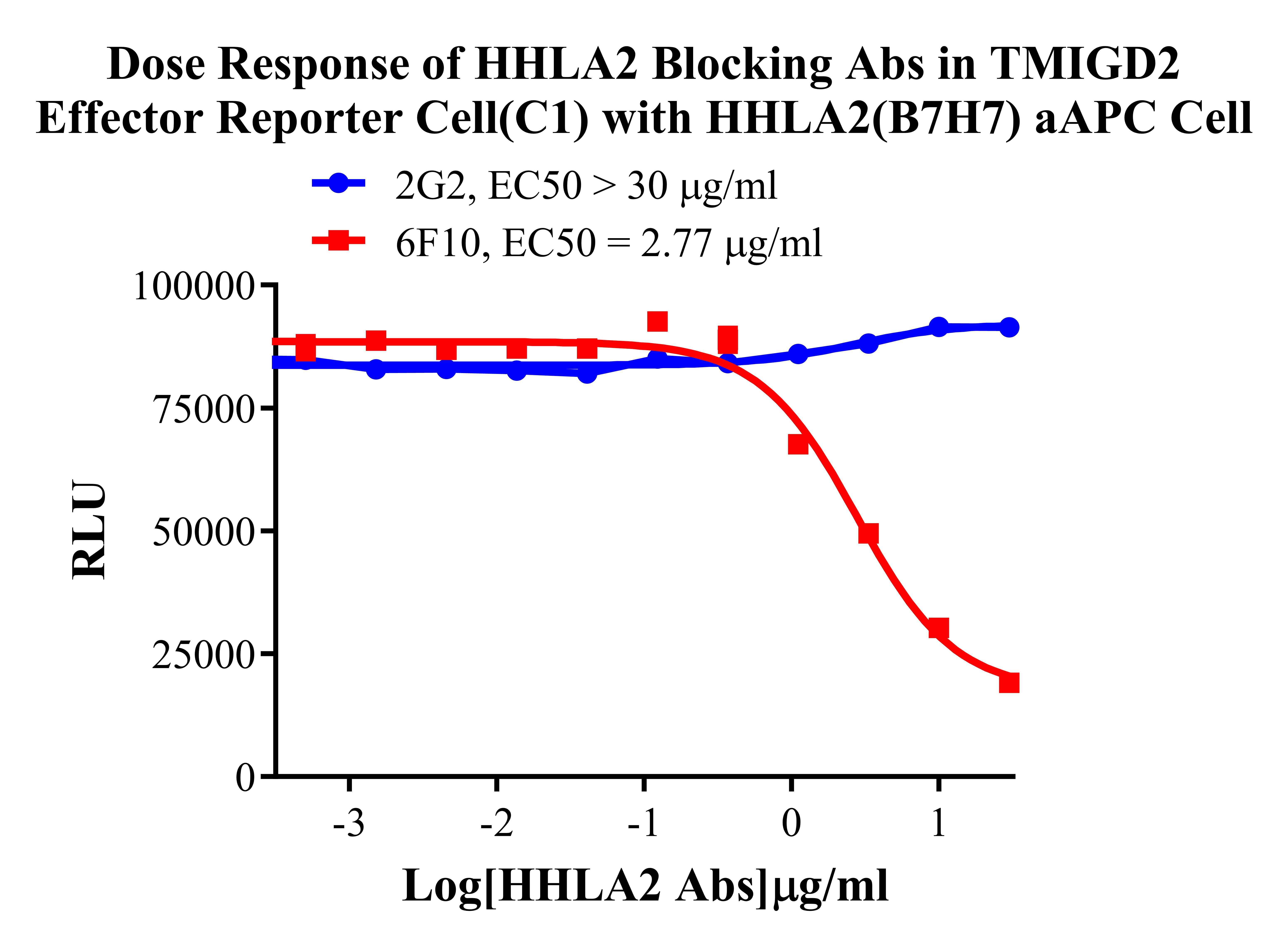 Figure 3. Dose Response of HHLA2 Blocking Abs in TMIGD2 Effector Reporter Cells (C1) With HHLA2(B7H7) aAPC Cell. |
