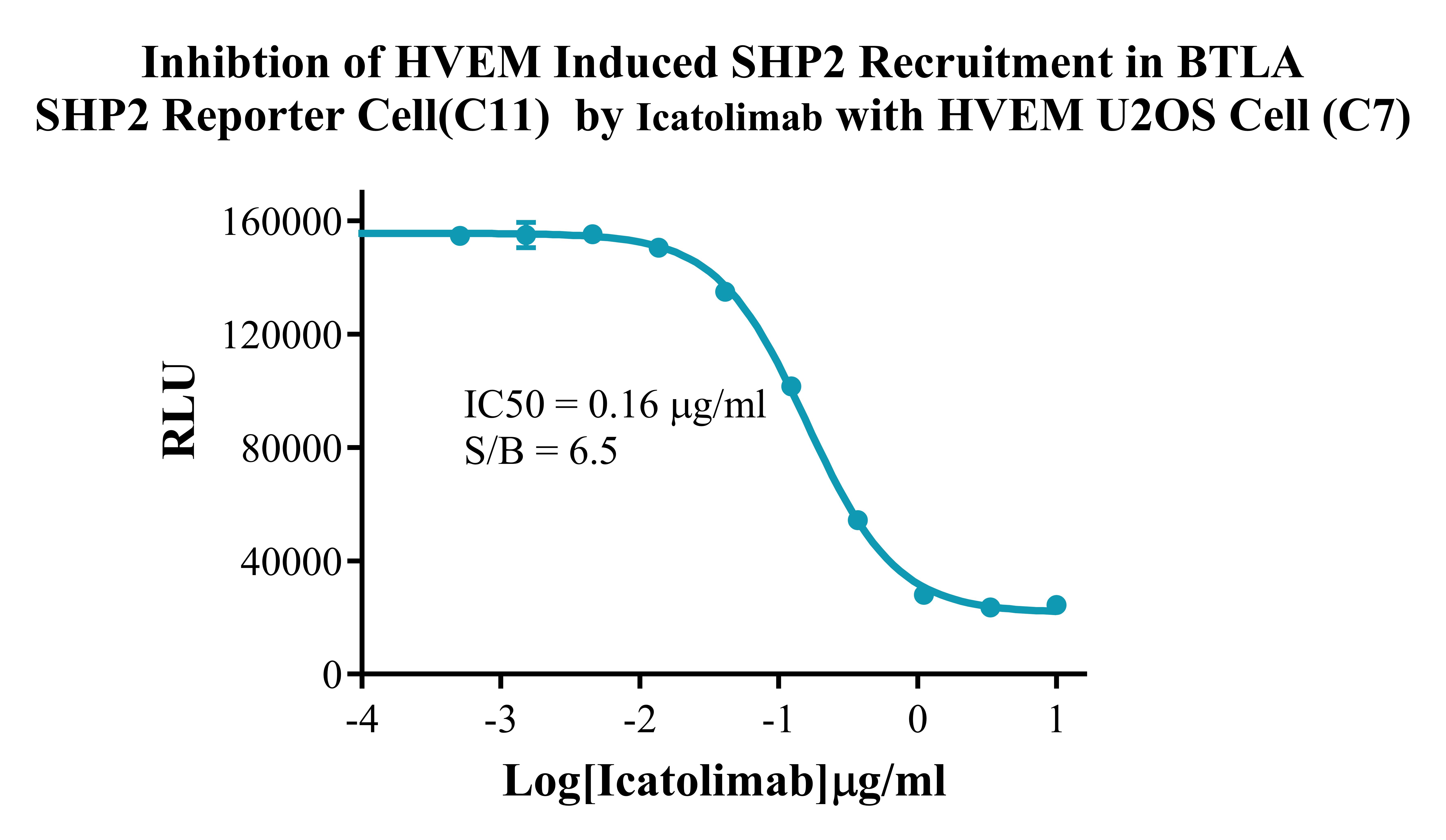 Figure 2. Inhibtion of HVEM Induced SHP2 Recruitment In BTLA SHP2 Reporter Cell (C11) By Icatolimab with HVEM U2OS Cell (C7). |