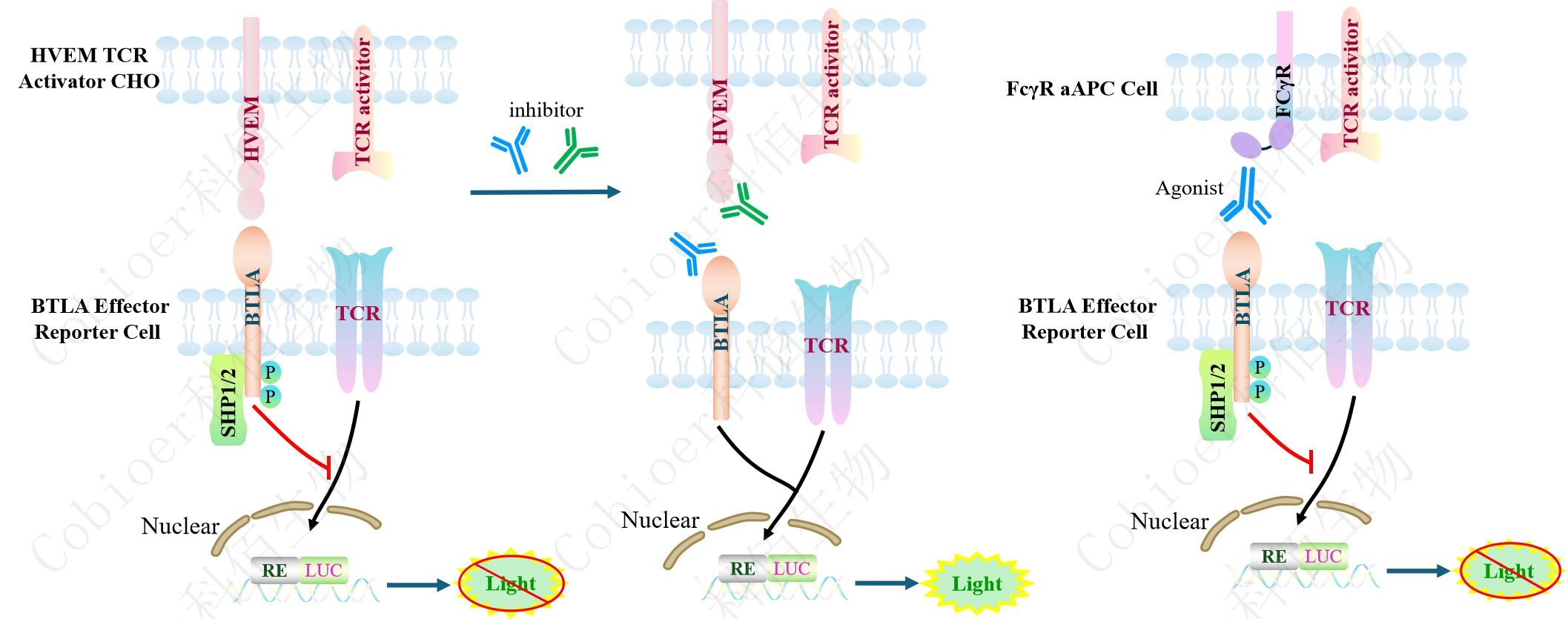 BTLA Effector Reporter Cell 報(bào)告基因藥靶模型很好的模擬了體內(nèi) BTLA 的信號(hào)轉(zhuǎn)導(dǎo)過 程,原理見下圖所示。![]() Figure 1. BTLA Effector Reporter Cell 模型原理圖 |