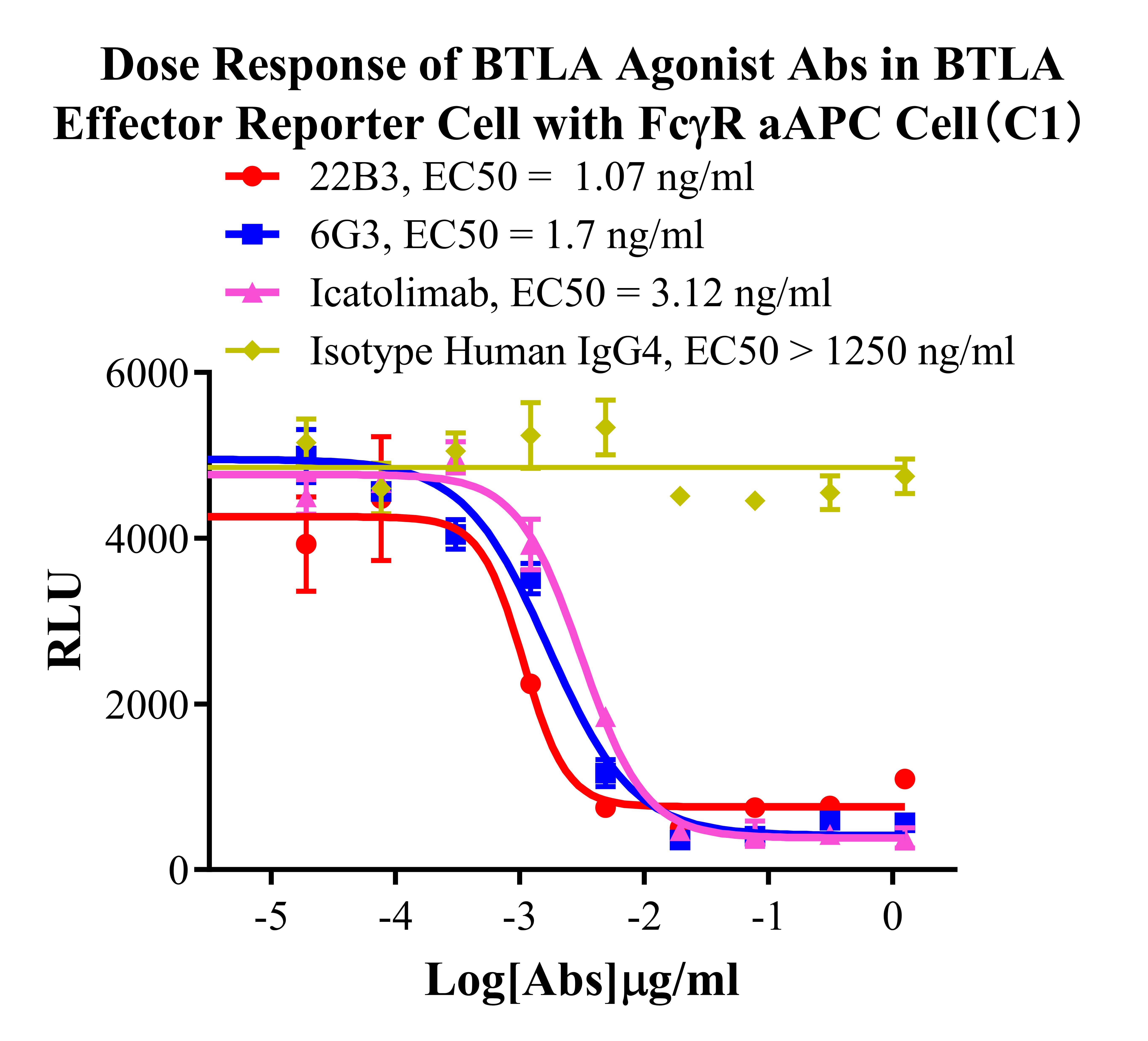 Figure 4. Dose Response of BTLA Agonist Abs in BTLA Effector Reporter Cell With FCγR aAPC Cell(C1). |