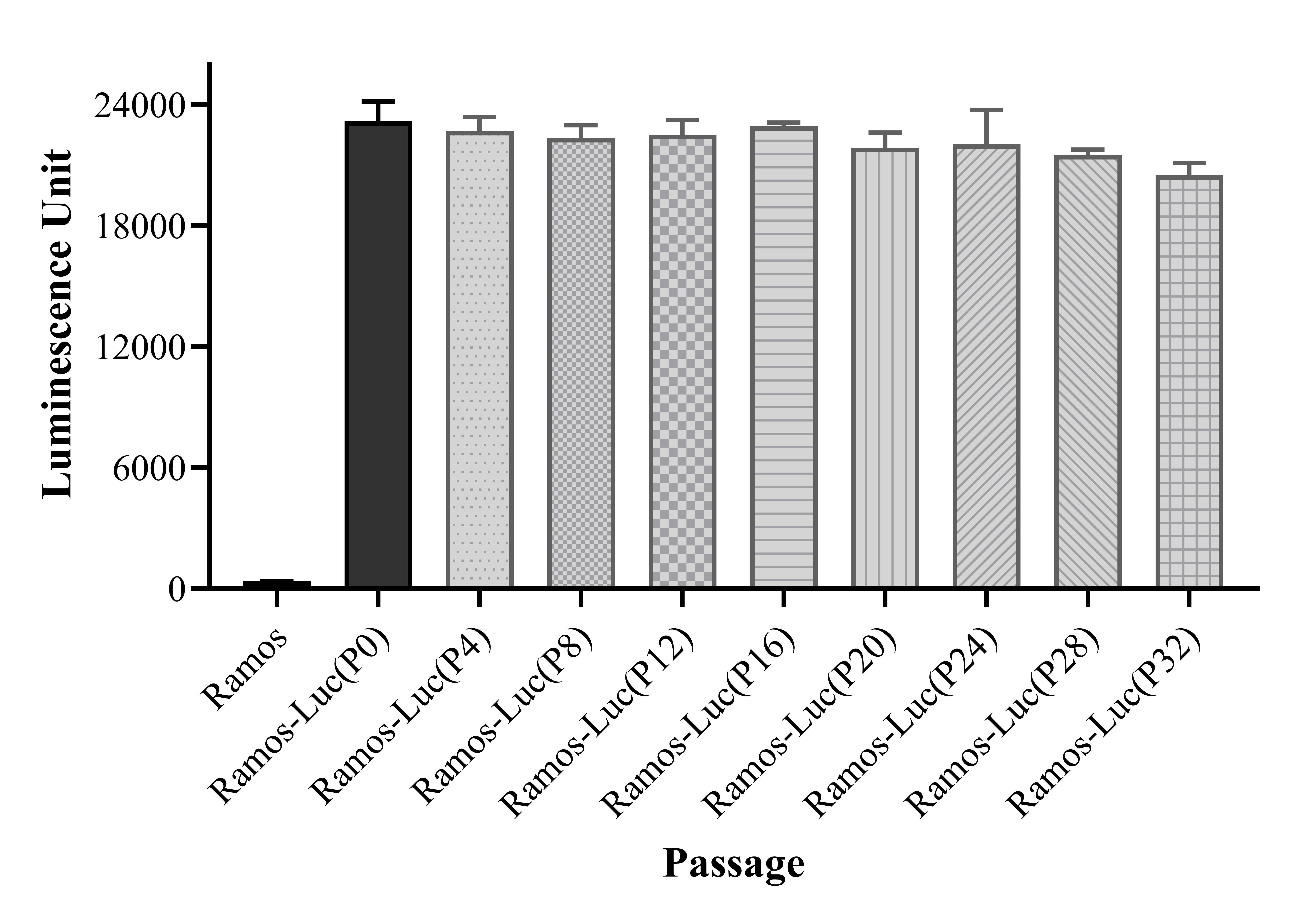 Figure 1. Stablity test results. Ramos-Luc showed at least 32 passage stability with similar luminescence unit. |
